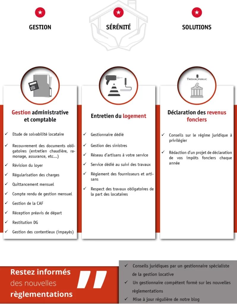 Suite à la demande d’un grand nombre de nos clients, nous pouvons désormais vous proposer une offre complète de gestion locative. En choisissant ce nouveau service, nous sommes l’unique interlocuteur avec votre locataire.